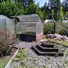 место для парковки авто под навесом, летний душ, современная теплица, парник, территория очень ухожена.